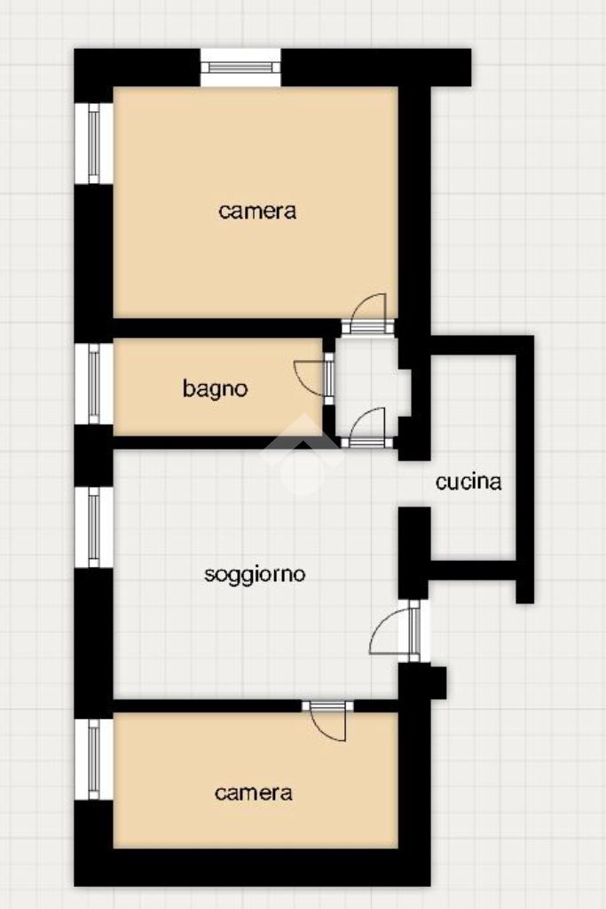 Attraverso una porta blindata si entra nell'ingresso con soggiorno e cucinotto, due camere da letto e un bagno finestrato.
