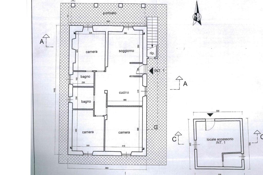 Da ogni vano della casa è possibile accedere al giardino di 1000 metri perimetrale con un magazzino.