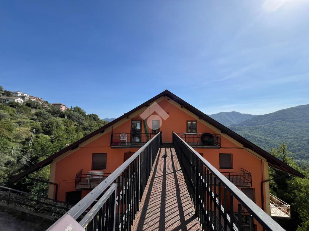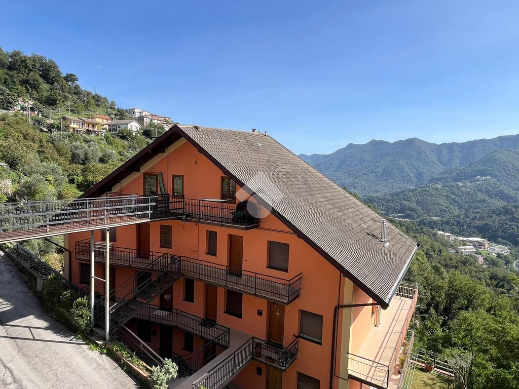 Moconesi Via Bandie - proponiamo un appartamento di 90 mq situato all'ultimo piano. L'ingresso conduce a un ampio soggiorno dotato di camino e un angolo cottura con balcone. La zona notte comprende due camere da letto e un bagno finestrato. Un pratico ripostiglio completa la proprietà. Grazie alla vista aperta l'appartamento è luminoso per la maggior parte della giornata. L'accesso all'appartamento è comodo tramite utilizzo del ballatoio. Il riscaldamento è autonomo e garantisce basse spese condominiali.