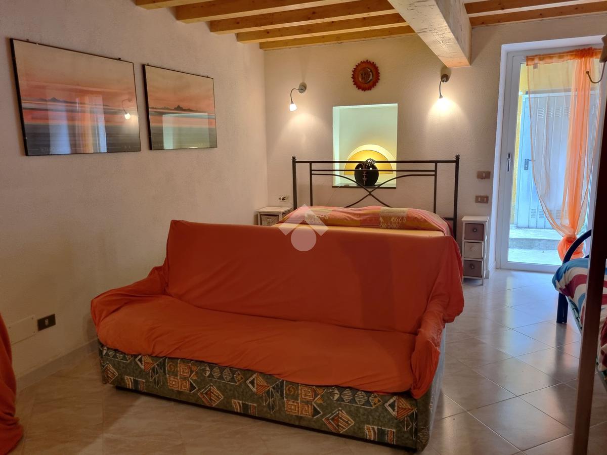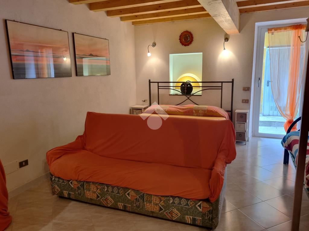 La seconda proprietà che è stata completamente ristrutturata è ancora accatastata come magazzino. L'ingresso è direttamente sulla zona giorno con un open space con l'angolo cottura. Una scala interna conduce al piano inferiore, dove si trova la camera da letto e il bagno.