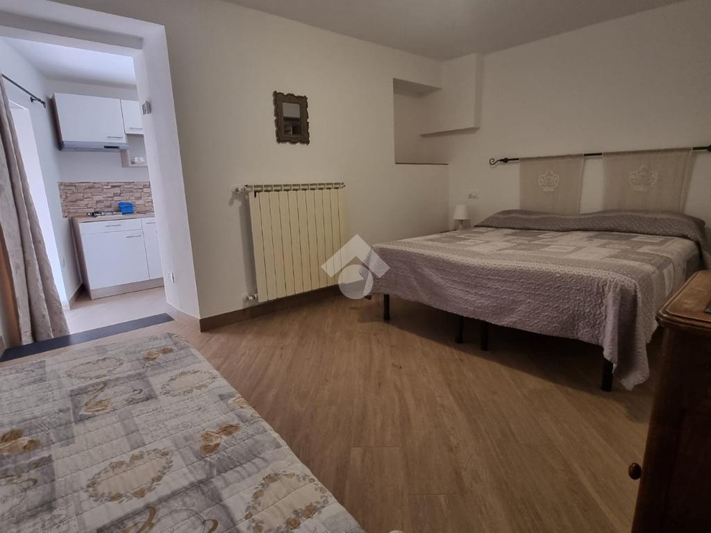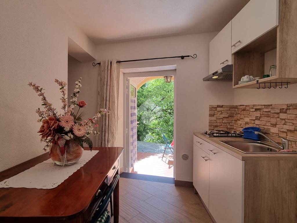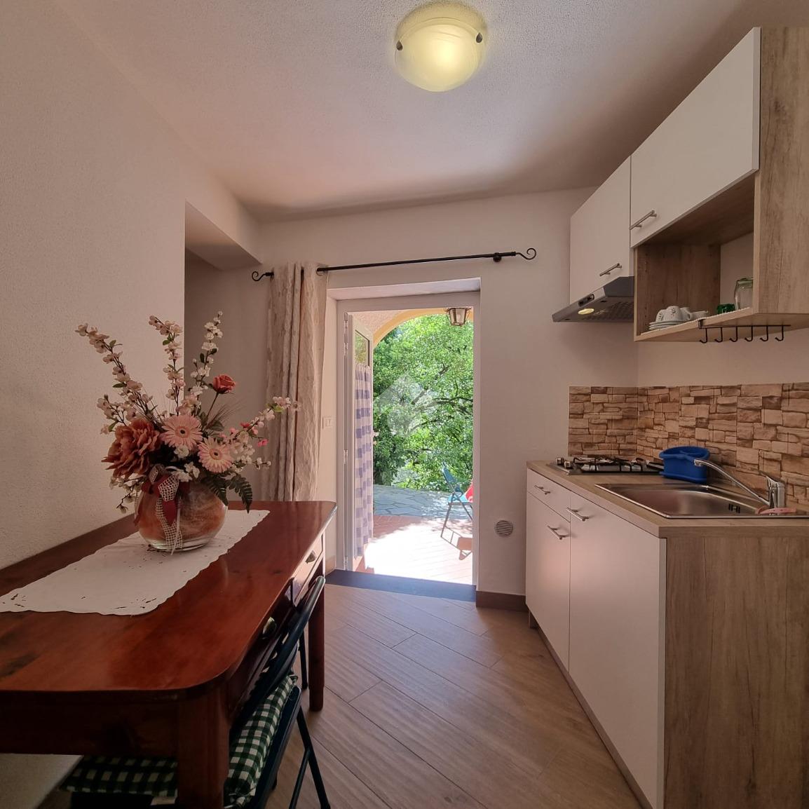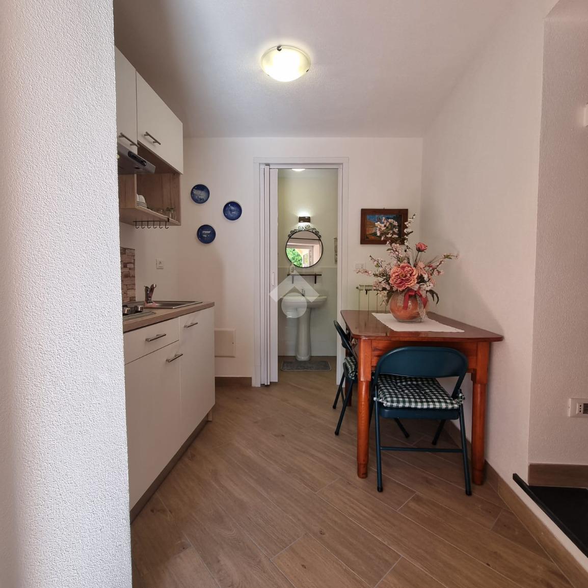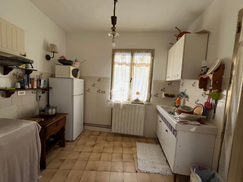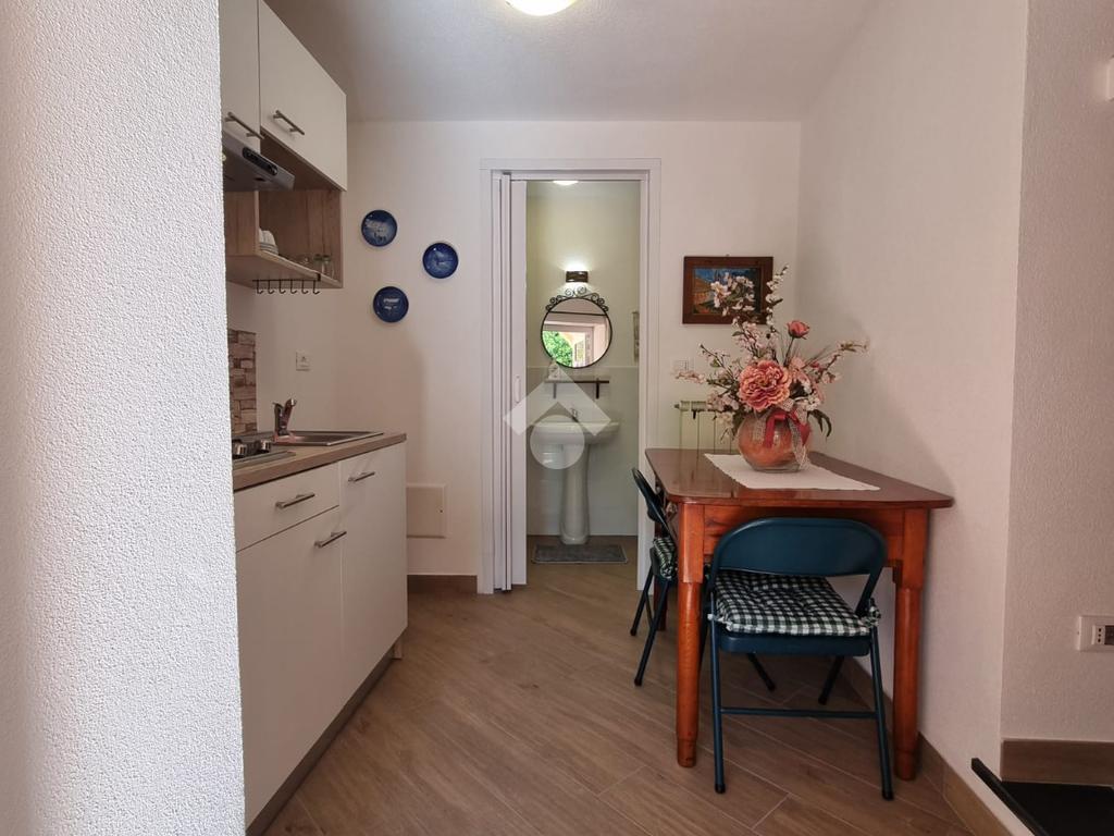 Al piano d'ingresso si trova la cucina abitabile insieme a un salone di ampie dimensioni, utilizzabile anche come camera o sala, e un bagno finestrato.