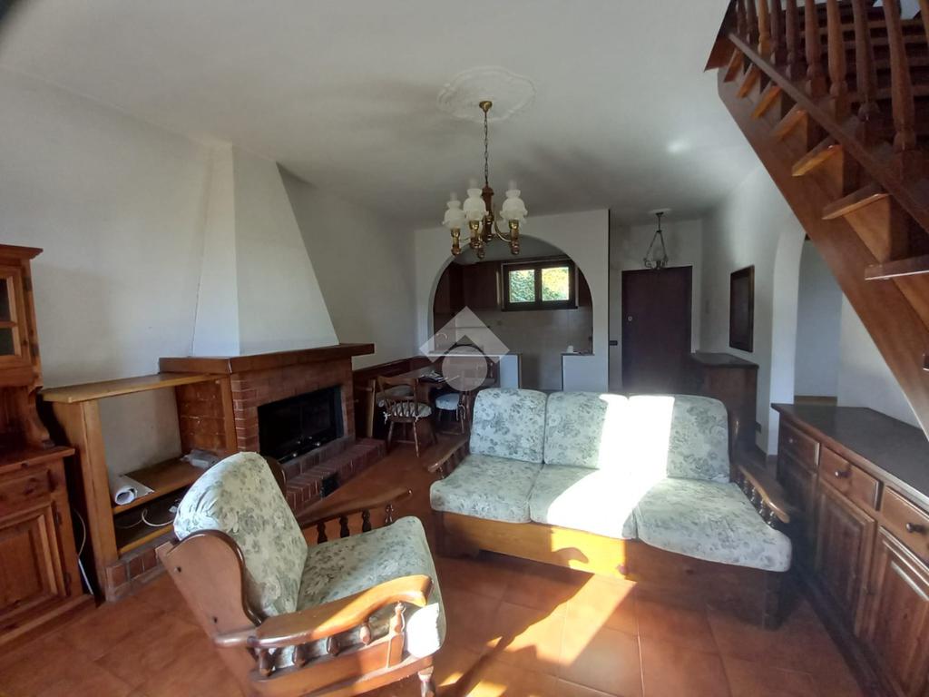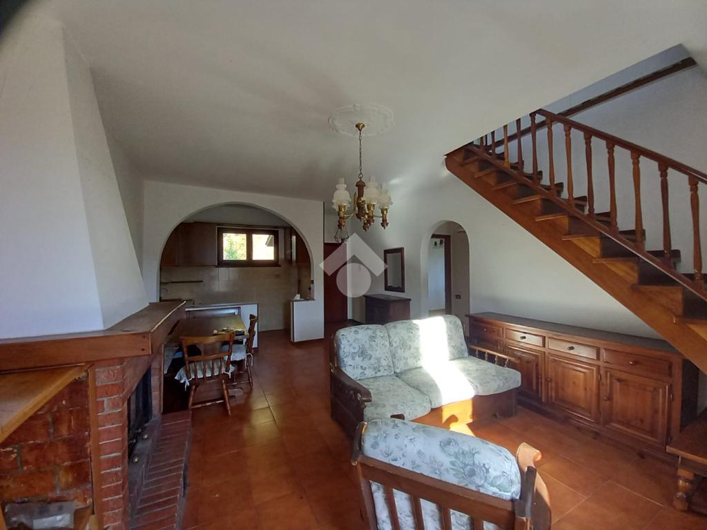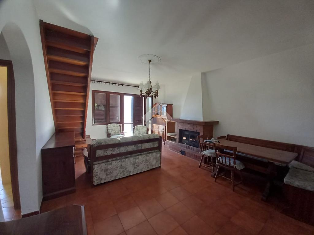 Al piano terra, ingresso nell'ampio soggiorno con camino in muratura, angolo cottura, due camere da letto di cui una singola e una matrimoniale, vano antibagno e bagno finestrato. Al piano, la camera matrimoniale ed il soggiorno hanno accesso al terrazzo.